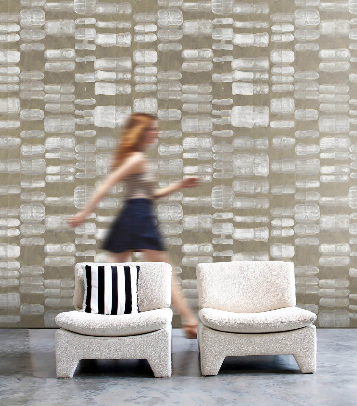 De son expérience de vie au Japon, Laur s’est imprégnée de la sensibilité Japonaise aux matériaux vivants, et s’inspire de la technique traditionnelle ancestrale de teinture ‘Shibori’ pour sa collection de papier peint.