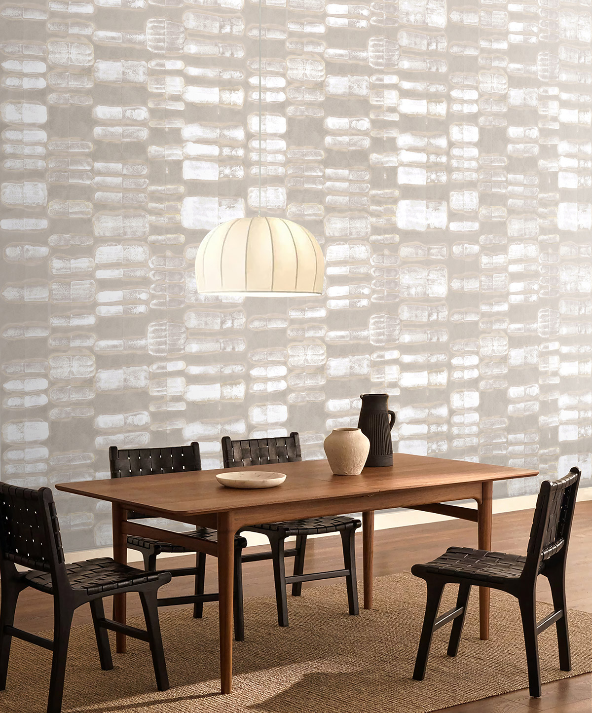 De son expérience de vie au Japon, Laur s’est imprégnée de la sensibilité Japonaise aux matériaux vivants, et s’inspire de la technique traditionnelle ancestrale de teinture ‘Shibori’ pour sa collection de papier peint.