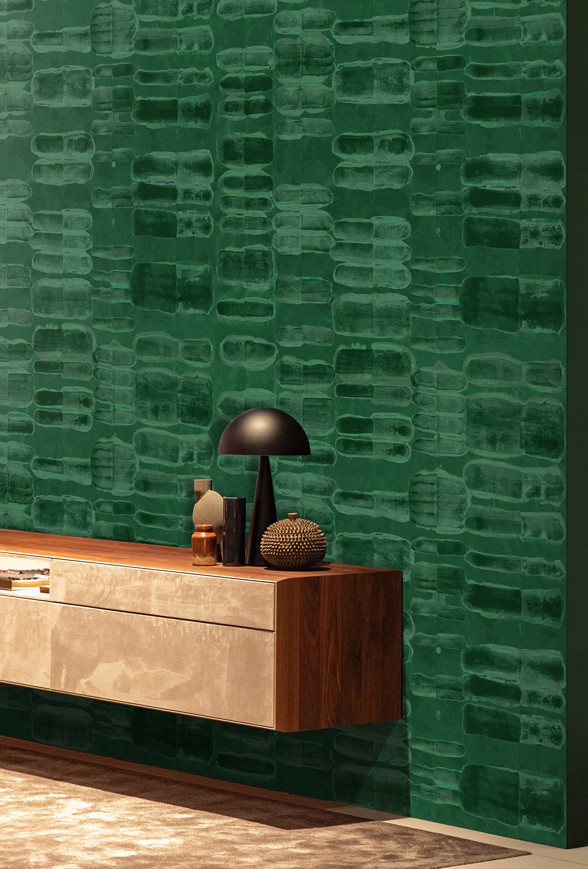 A la suite de cette étape de création ; elle met alors en exergue la matière et développe les déclinaisons couleurs de la collection de papier peint.